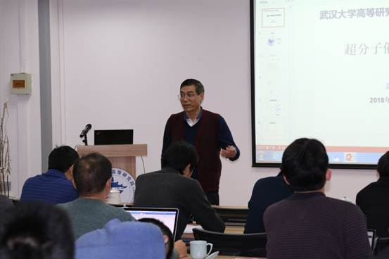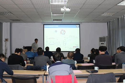 第一位报告人是陈世贵老师,他的报告题目是《超分子组装与催化》,主要介绍了苯酰胺缩聚物类超分子框架的合成和构建工作,以及为进一步开展超分子催化研究所做的铺垫。同时,陈世贵老师还介绍了2017年,他在电镜仪器平台的建设方面所做的工作。