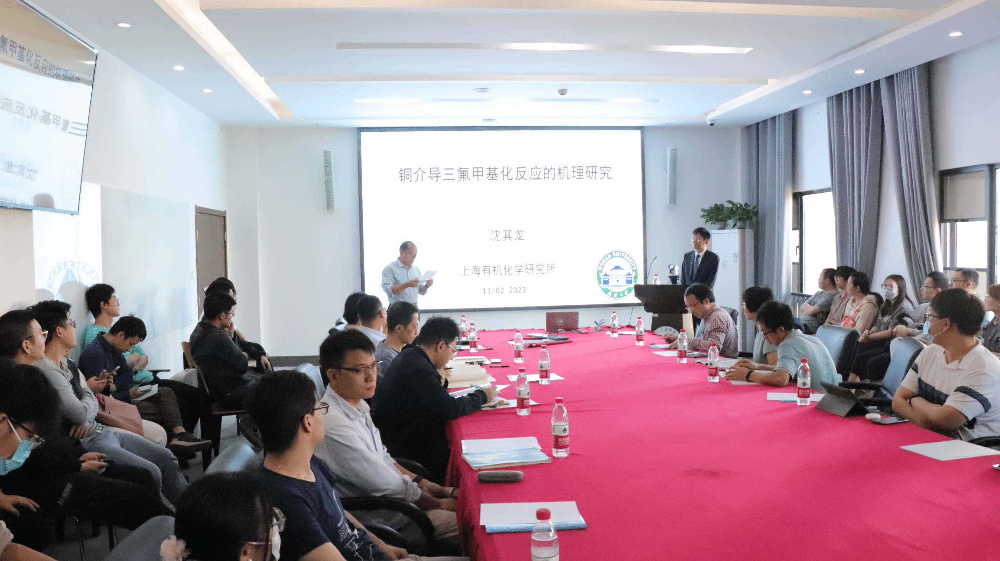 沈其龙研究员开篇简要介绍了课题组关于氟化学的相关工作,以及新型氟试剂在有机合成中的应用。随后,他以铜介导三氟甲基化反应的机理研究为重点进行了讲解,深入浅出地分享了其团队在三价铜络合物的合成及机理研究中取得的重要研究成果。