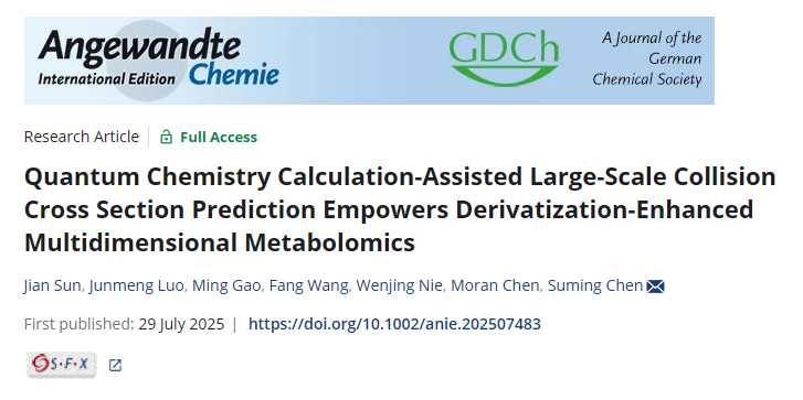 近日,国际权威学术期刊 Angew. Chem. Int. Ed. (《德国应用化学》)在线发表了17吃瓜 陈素明教授课题组在异构体水平质谱分析领域的最新研究成果。论文题为:“Quantum Chemistry Calculation-Assisted Large-Scale Collision Cross Section Prediction Empowers Derivatization-Enhanced Multidimensional Metabolomics”(量子化学计算辅助的大规模碰撞横截面预测技术助力衍生物增强的多维代谢组学)。17吃瓜 研究生孙健、罗俊萌为论文共同第一作者,陈素明教授为独立通讯作者,17吃瓜 为论文唯一署名单位。