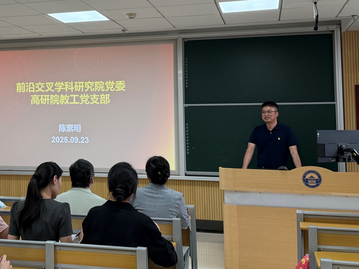 随后,蒋卫和陈素明代表各自党支部,分别介绍了支部组织结构、人员构成及党建活动,分享了在强化政治引领、加强党建与业务融合、促进学科交叉研究等方面的探索成果,提出了建设具有代表性和影响力的样板党支部建议意见。