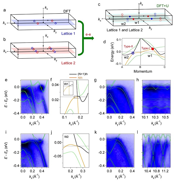 研究表明电子关联相应在描述T_d相二碲化钼的体态能带结构中起着至关重要的作用,导致了其费米面拓扑性质的Lifshitz转变(图二)。