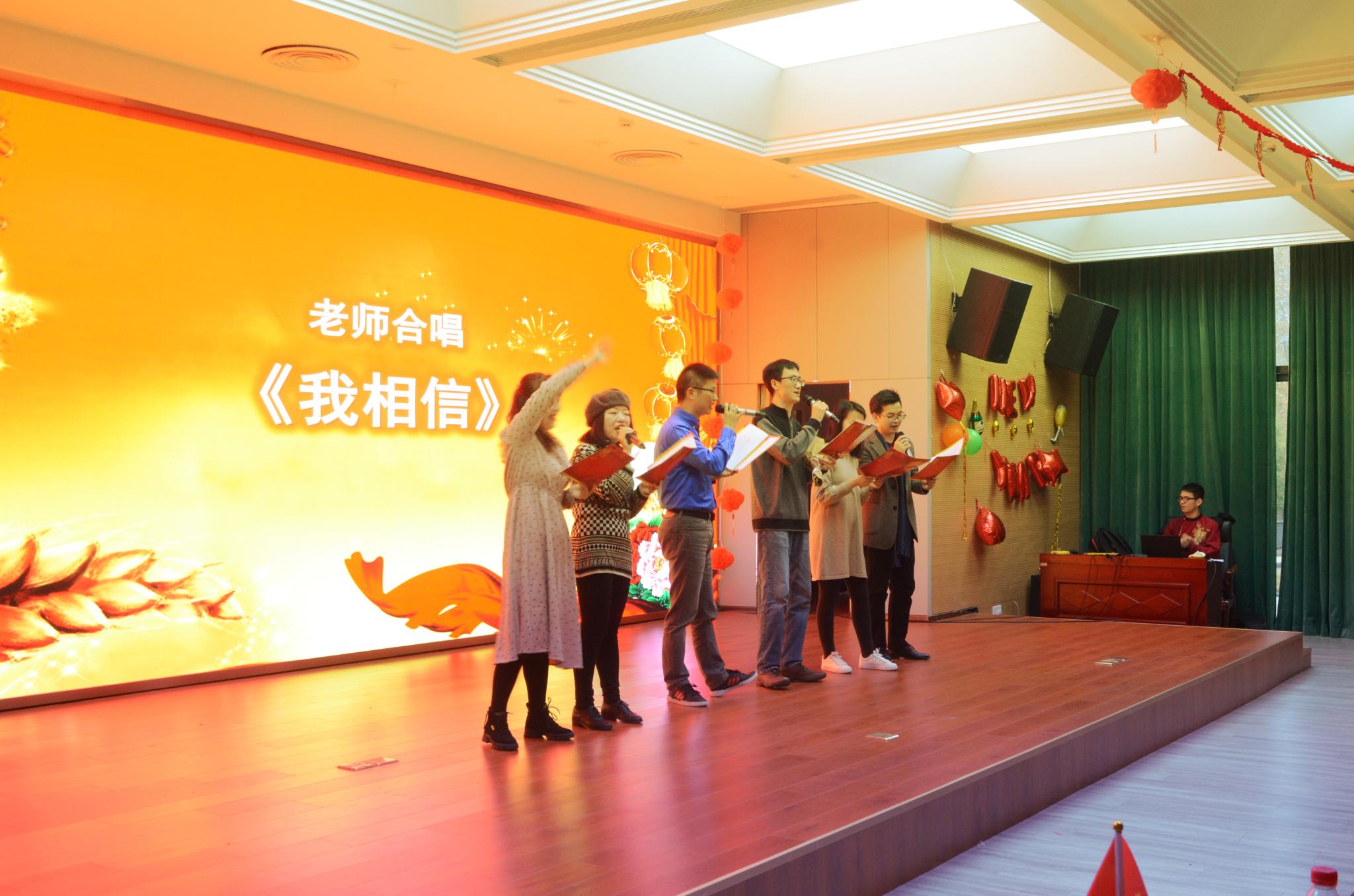 表演环节,既有劲歌热舞,又有风趣幽默的相声,更有展示传统文化的“汉服秀”。原创歌曲“你”、吉他弹唱“南方姑娘”、独唱“阴天快乐”和“世间美好与你环环相扣”,相声“满腹经纶”,极具古典特色的集体节目“汉服秀”,教师合唱“我相信”,学生合唱“我和我的祖国”,一个个节目精彩纷呈,响起阵阵热烈的掌声。