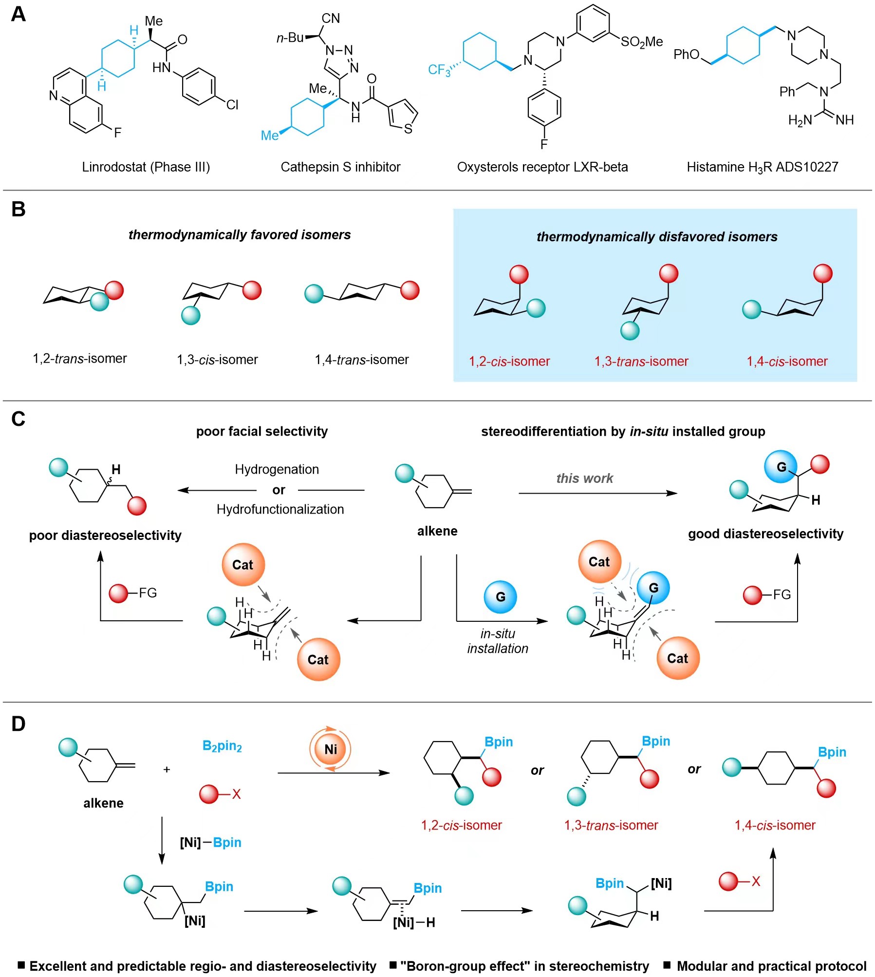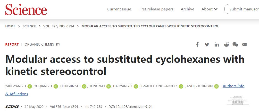 5月13日,国际顶级期刊Science(《科学》)在线发表了17吃瓜 教授、博士生导师、副院长阴国印所带课题组的重要研究成果。该研究刚刚在前期烯烃1,1-碳硼化工作(Angew. Chem. Int. Ed. 2019, 58, 8872-8876; Nat. Catal. 2020, 3, 951-958等)的基础上,将碳硼化的工作扩展到1,1-二取代的环外烯烃,不仅可以控制很好的区域选择性,环上的立体构型也可以得到很好的控制。由此开创了一种简单、高效模式化合成1,2-顺式、1,3-反式以及1,4-顺式取代环己烷的方法,并且该方法具有优异底物兼容性。研究成果不仅解决了环己烷合成领域长期存在的挑战,打开了热力学不稳定取代环己烷模式化合成的大门,让复杂药物分子的合成变得更加简单、高效,也是“金属迁移”策略合成应用的重要进展。文章链接://www.science.org/doi/10.1126/science.abn9124。