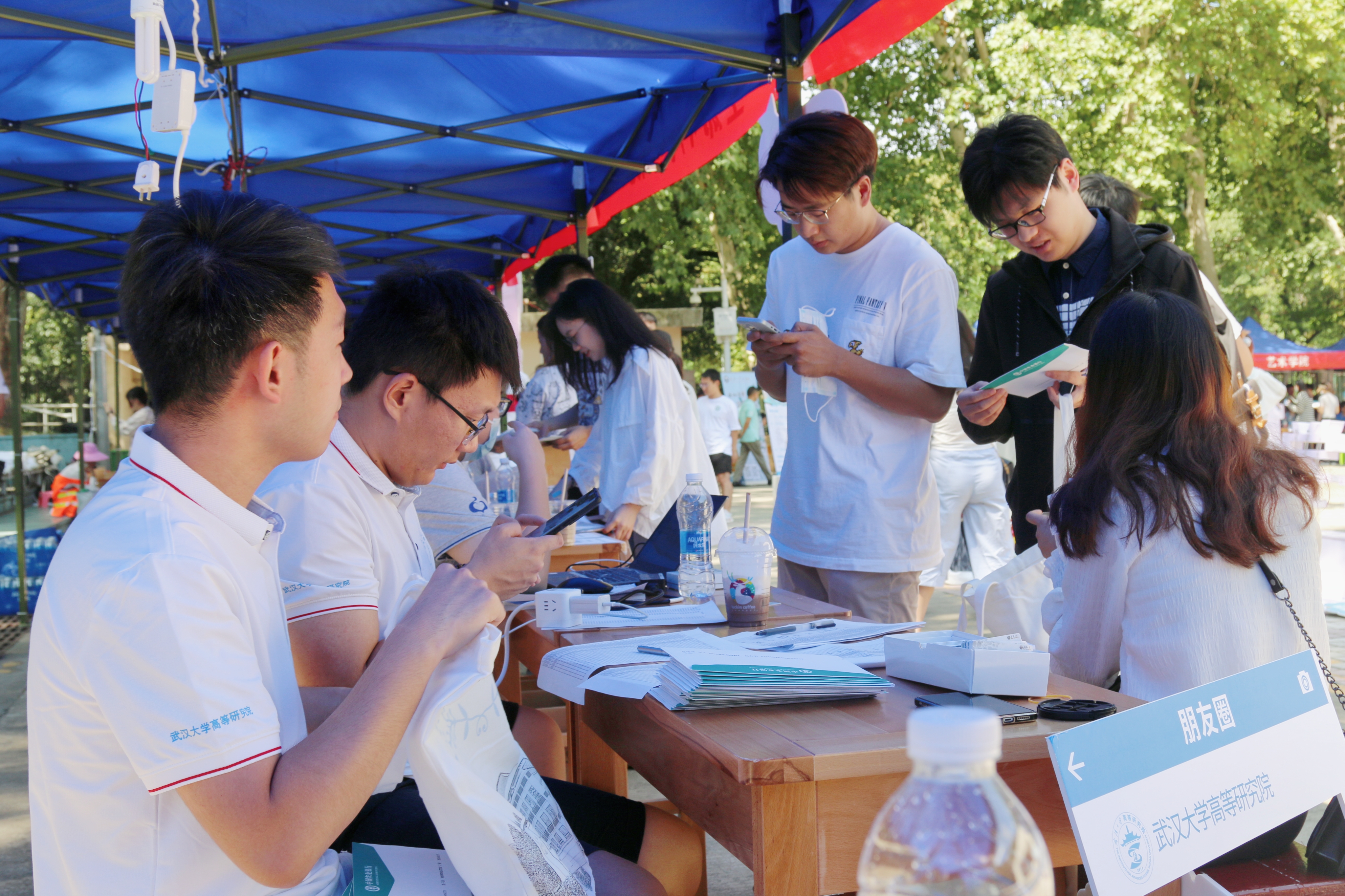 学院副院长雷爱文教授、张也卉老师,学术服务办公室主任谢章斌老师、兼职辅导员张子康老师,院研会的同学们,与新“山”民们一起共话科研生活,笑谈珞珈风情。