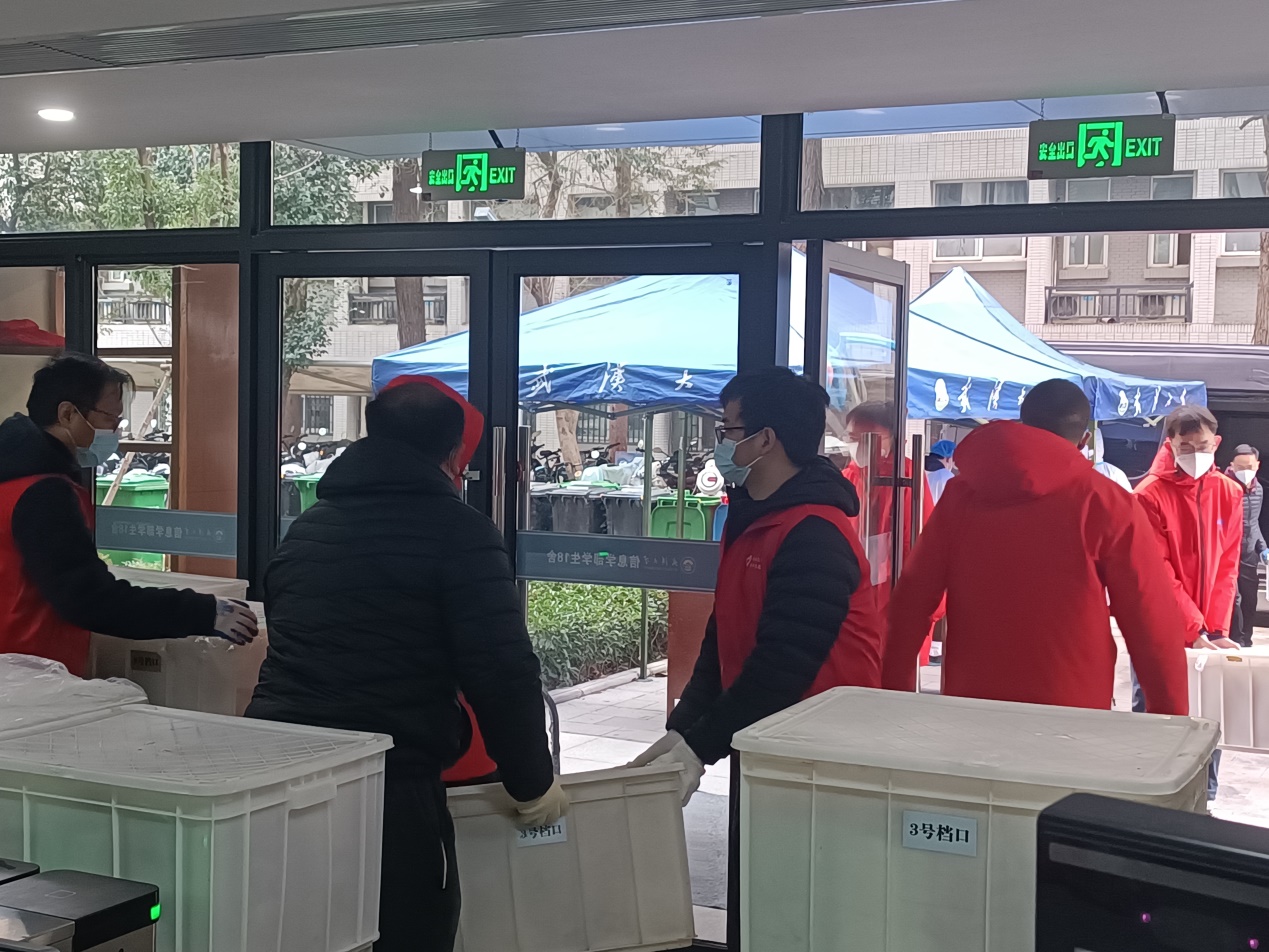 服务学生,甘当勤务兵。疫情防控重点在服务好学生,难点在引导好学生。一日三餐,最抚人心。楼栋静默时,全校5万余名学生的每日保供即是大问题。后勤人手不足,学术服务办公室主任谢章斌便第一时间报名党员突击队,担负起全校餐饮配送的重任。打包、转运、装车……从信部四食堂出发,足迹遍布全校各片区宿舍,无论天寒地冻,日均送餐万余份。风雨兼程中,留下了谢老师搬运送饭的“勤务兵”身影。17吃瓜 作为科研单位,学生大多担负一定的科研任务,有的更处于毕业前实验关键阶段。博士后群体在防疫最紧张时刻,发挥了关键作用。胥国勇教授课题组博士后袁术坚守实验室,为封控学生维护重要实验材料,协助完成日常实验手续,并积极运送防护服、口罩等防疫物资,发挥了积极作用。住在樱园1舍的钟义同学,由于脚部受伤,疫情期间急需复诊和换药。收到学生申请后,仝永佳老师主动接过任务,第一时间和文理学部校医院预约联系,在院里安排的专车护送下,按照“宿舍-校医院”两点一线的原则,全程陪同学生完成就医。