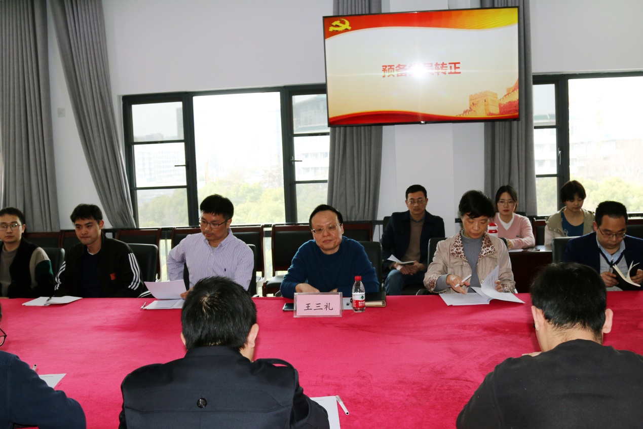 会议的第一项议题是讨论王纪科同志的转正申请。王纪科首先向全体党员汇报了他的转正申请,入党介绍人张也卉、陈素明分别介绍了王纪科在预备党员期间的综合表现,组织委员谢章斌代表支委会报告了征求党员和群众意见情况和支委会意见,参会党员也分别表达了自己的意见。最后,大会通过无记名投票的方式,全票通过王纪科同志的转正申请。